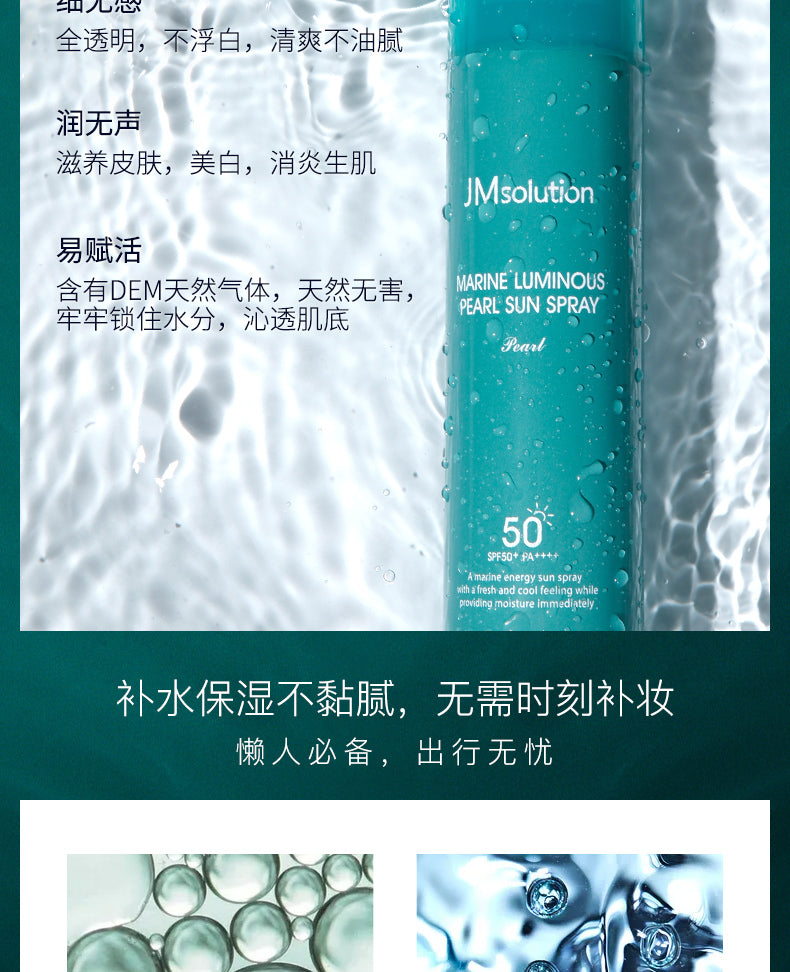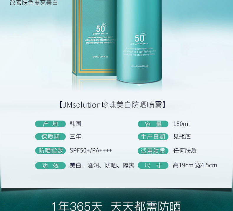 【自营】韩国JM SOLUTION肌司研 海洋珍珠全身防晒喷雾SPF50+ PA++++ 180ml 清爽隔离 全身防水