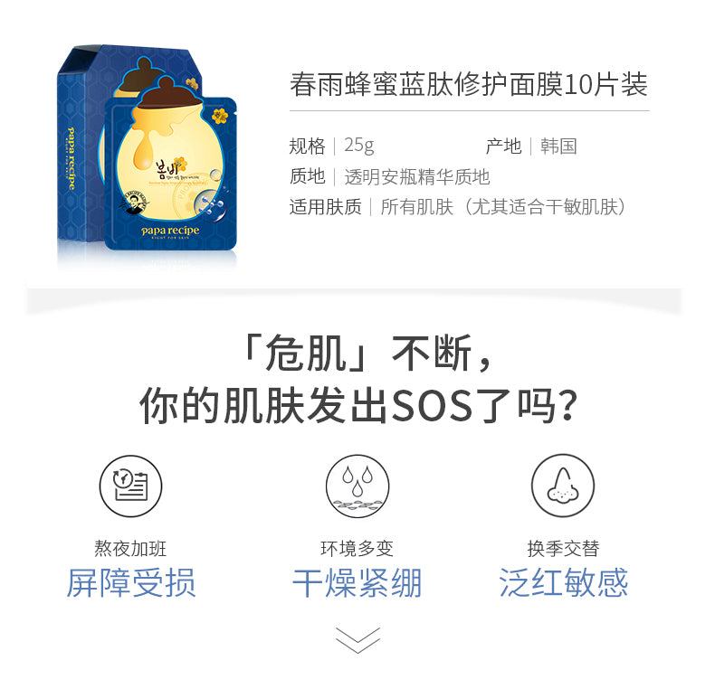 【自营】韩国PAPARECIPE春雨 蓝肽补水保湿温和舒缓面膜 25g 单片入