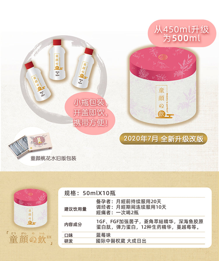 【自营】日本BPC 新版桃花水童颜饮EX 女性美容饮 50ml×10瓶 调理身体养颜补气血暖宫