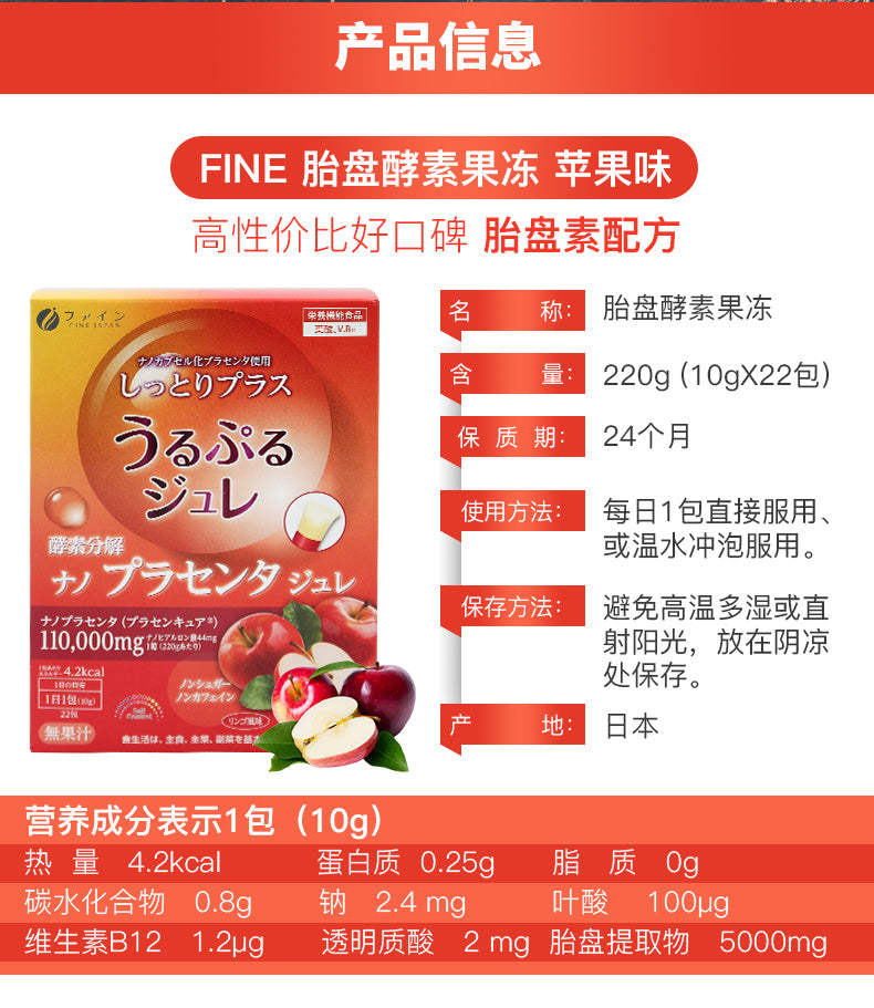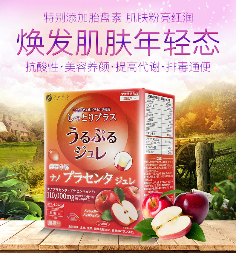 【自营】日本FINE 果蔬分解 胎盘素酵素果冻 10gx22包 苹果味 嫩肤养颜清肠排毒酵素