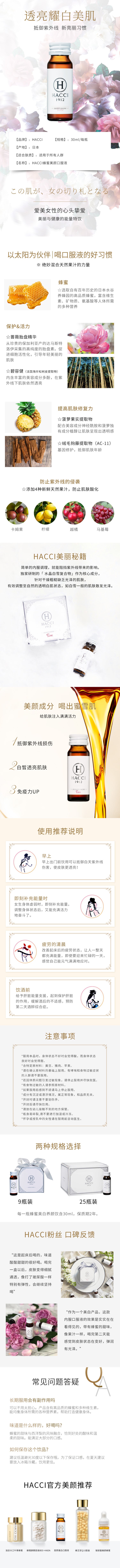 【自营】日本HACCI花绮 蜂蜜美白养颜口服液 30ml*10瓶装 抵御紫外线伤害补充能量美白肌肤