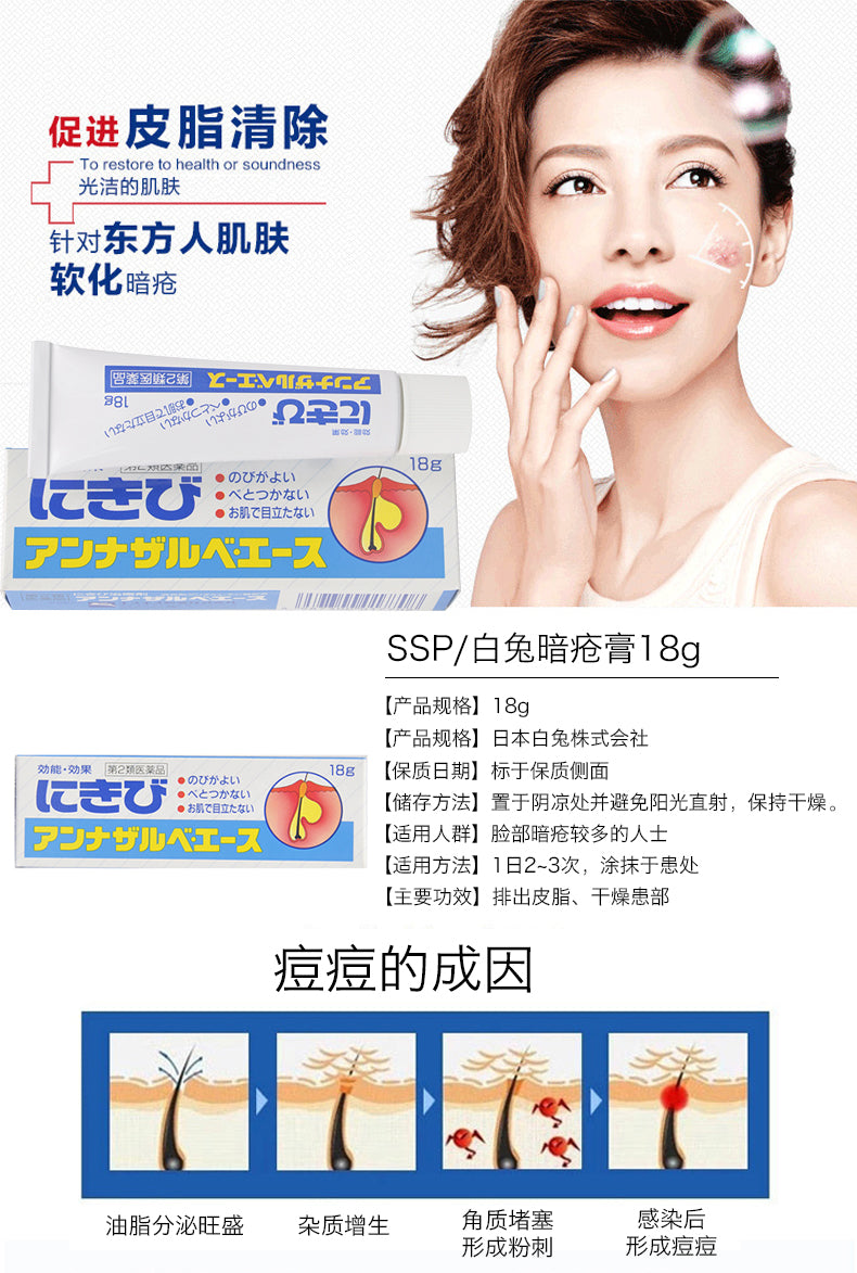 日本SS PHARMACEUTICAL白兔制药 暗疮膏祛粉刺去痘消炎 18g