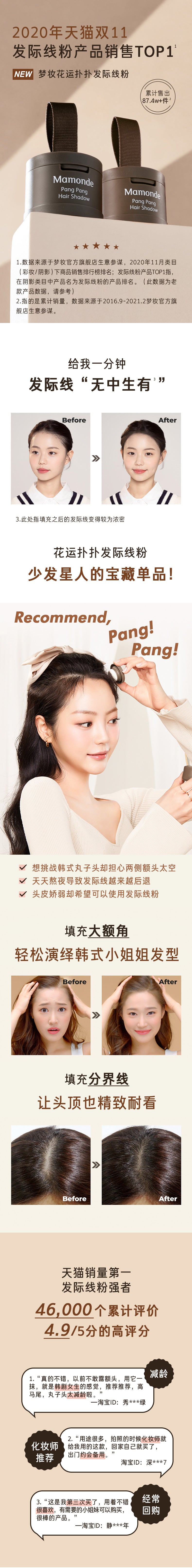 【自营】中国Mamonde梦妆 花运扑扑发际线粉 #01 棕黑色 3.5g 修饰发际线阴影高光拯救大额头
