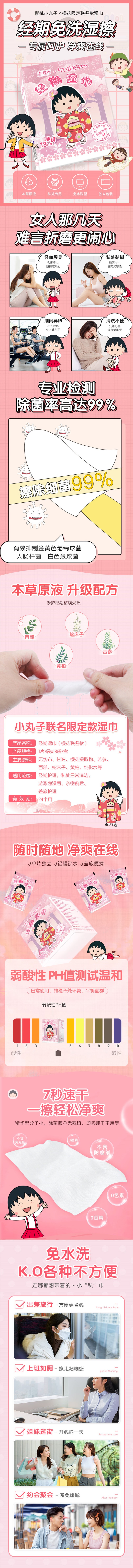 【自营】中国RENHE仁和 妇炎洁经期湿巾 樱桃小丸子 18片装 私处洁阴杀菌消毒护理清洁湿巾