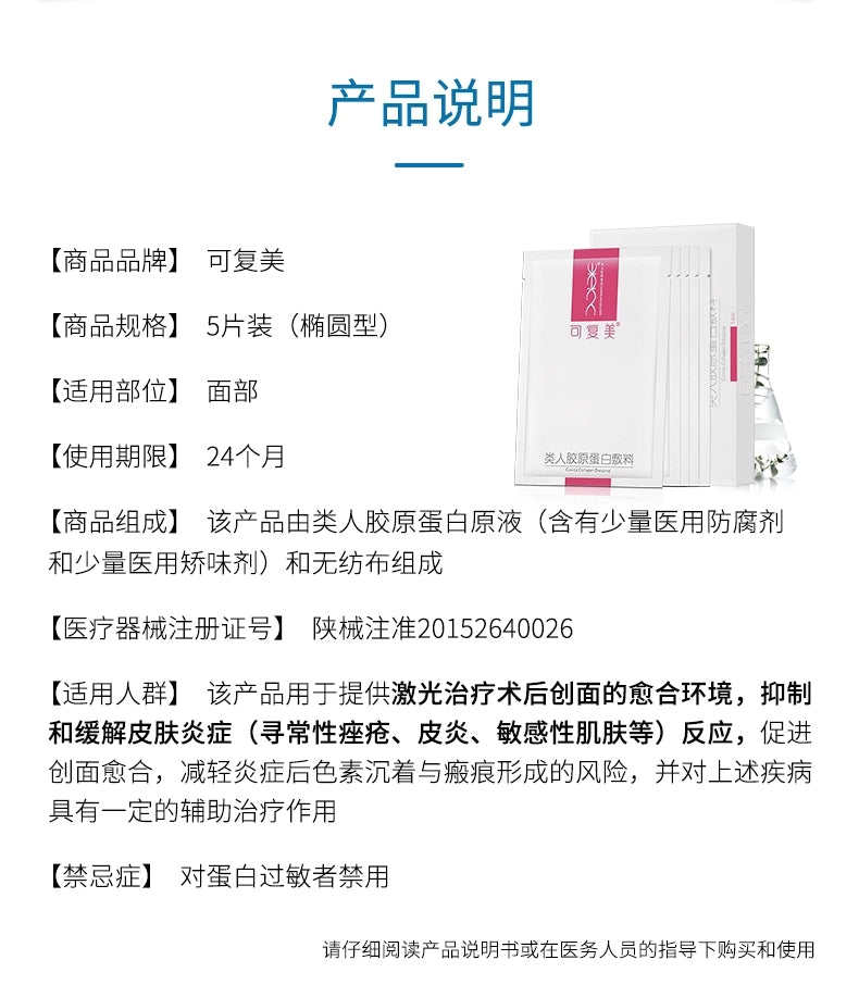 【自营】国货之光COMFY可复美 类人胶原蛋白敷料面膜 5片装 粉盒 医美术后修护用敏肌冷敷贴