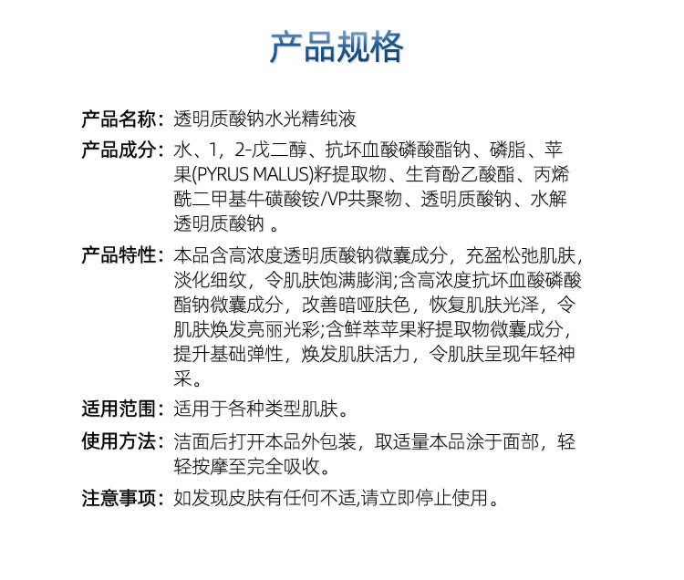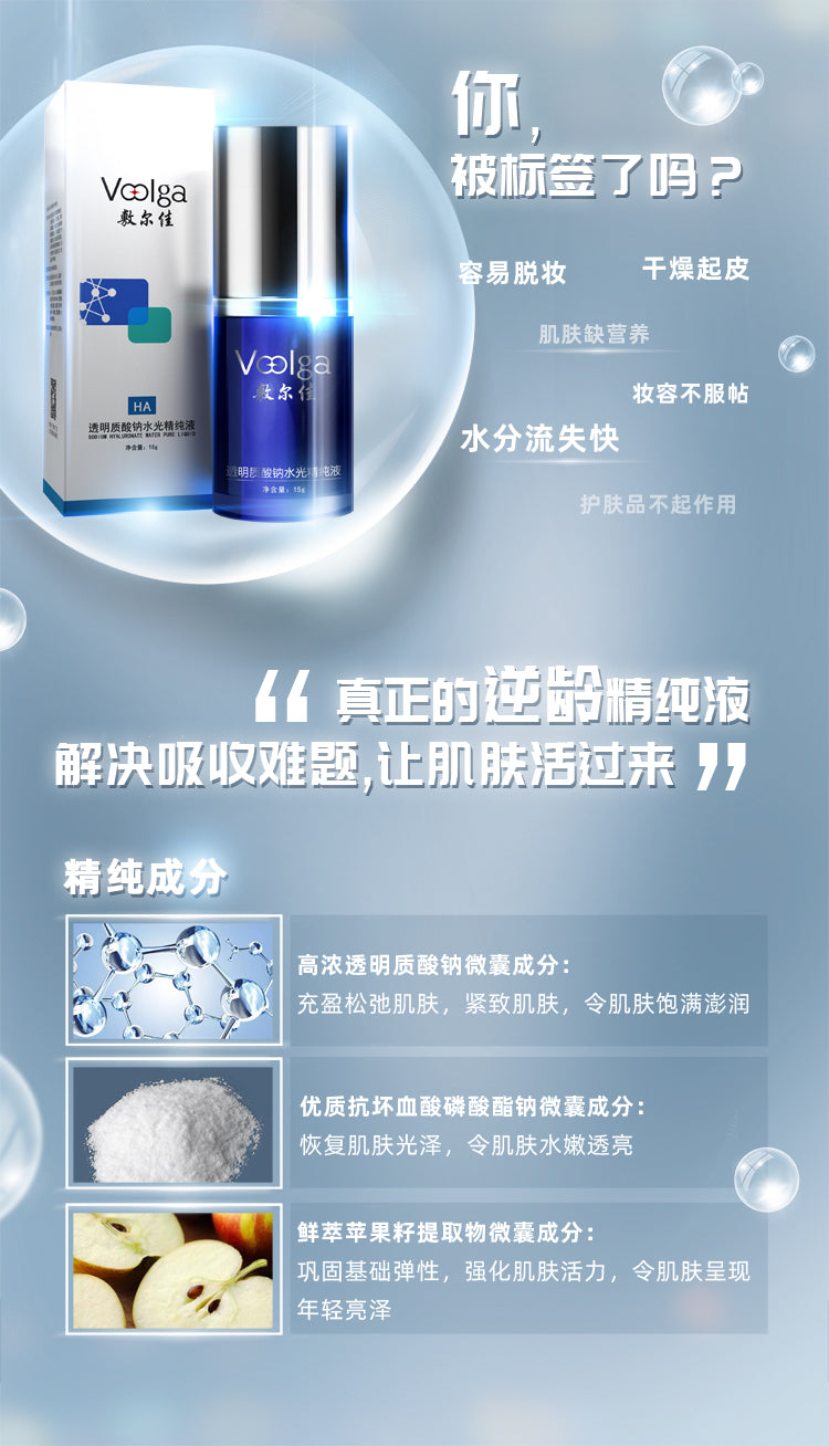 【自营】敷尔佳VOOLGA 透明质酸钠水光精纯液 15g 玻尿酸精纯成分 锁水保湿 紧实肌肤