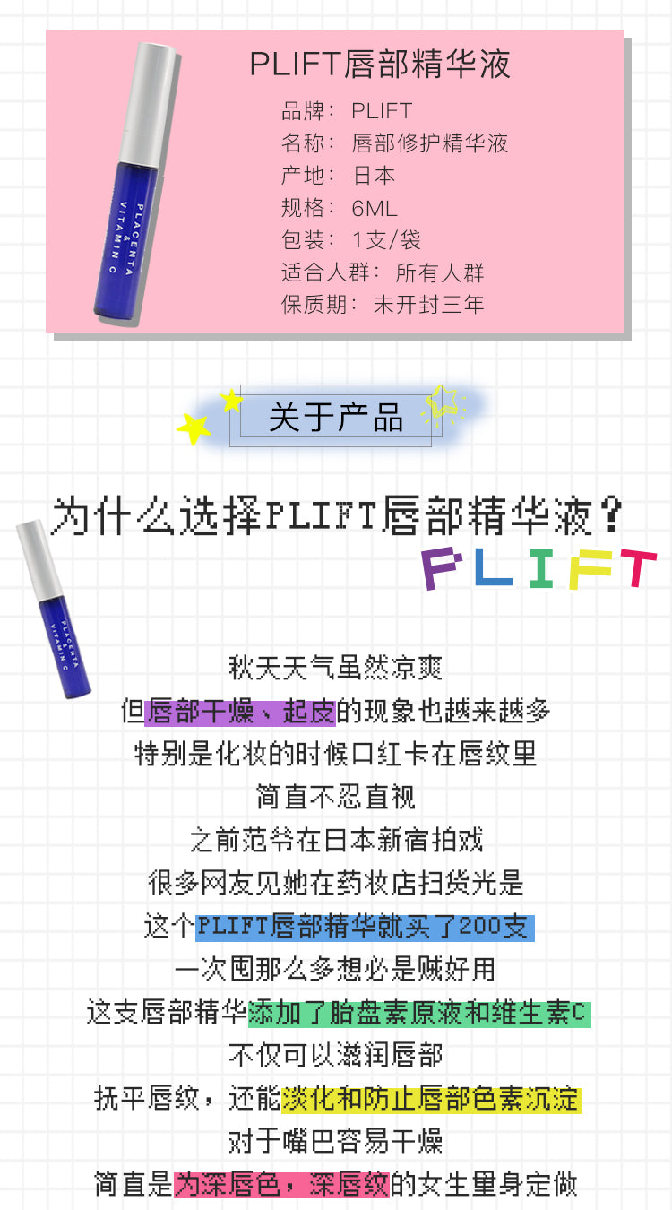 【自营】日本天然物研究所PLIFT VP胎盘素唇部精华液 6ml