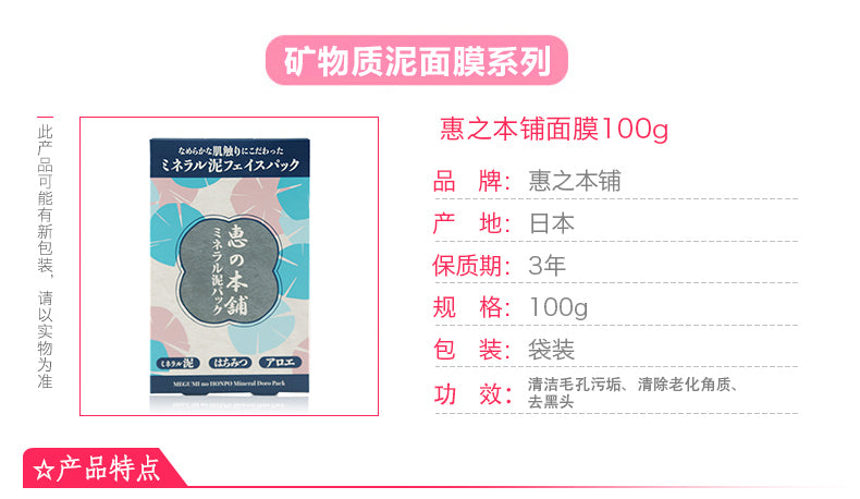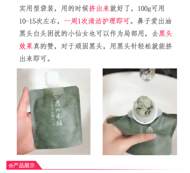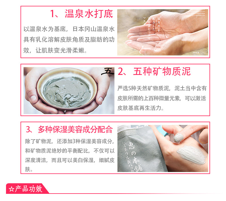 【自营】日本惠之本铺 新款美肌清洁矿物质泥温泉水面膜100g 深层清洁毛孔