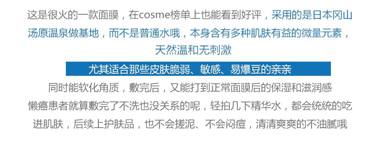 【自营】日本惠之本铺 温泉系美人汤纯净无添加温泉水胎盘素美白面膜