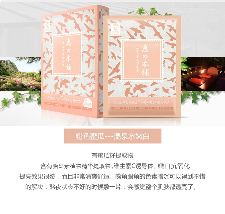 【自营】日本惠之本铺 温泉系美人汤纯净无添加温泉水胎盘素美白面膜 #粉色补水嫩白 5片入