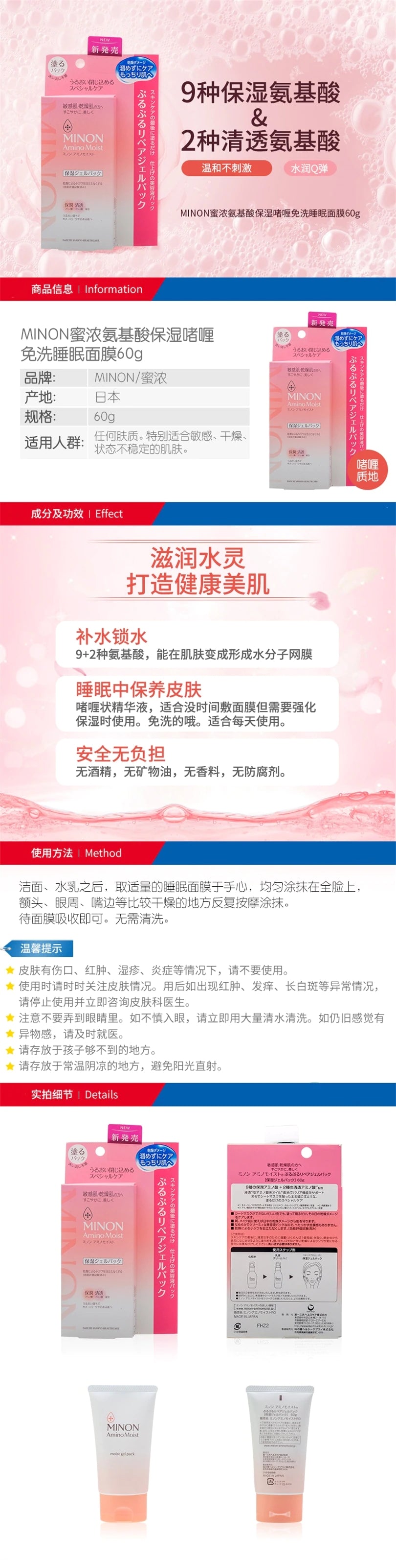 【自营】日本第一三共 MINON氨基酸补水保湿免洗睡眠面膜 60g 敏感干燥肌可用