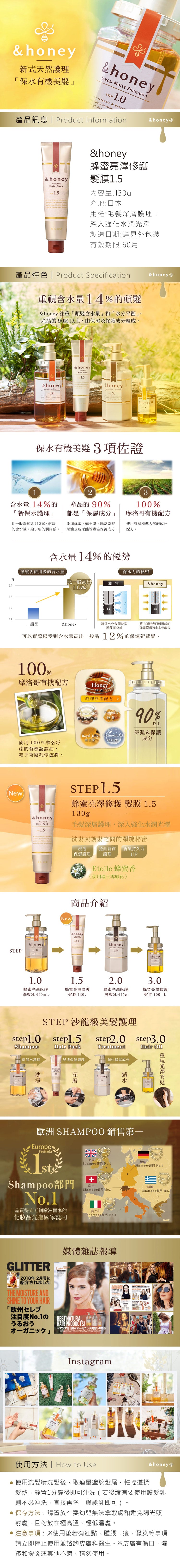 【自营】日本&Honey 安蒂花子蜂蜜无硅油超保湿修护发膜 130g