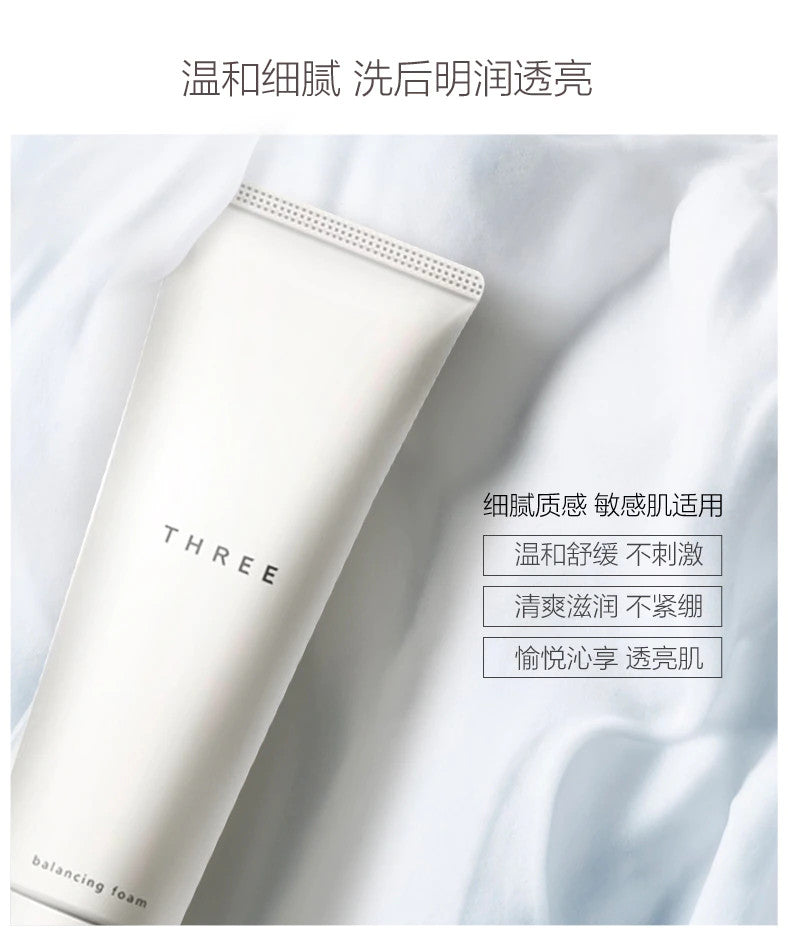 【自营】日本THREE 新版敏感温和平衡泡沫洁面乳 100g