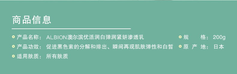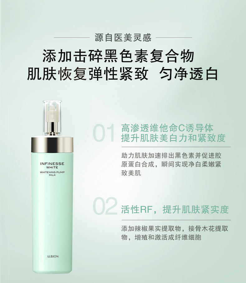 【自营】日本ALBION澳尔滨 新版优活美白紧致渗透乳 200g 淡化黑色素 补水保湿乳液