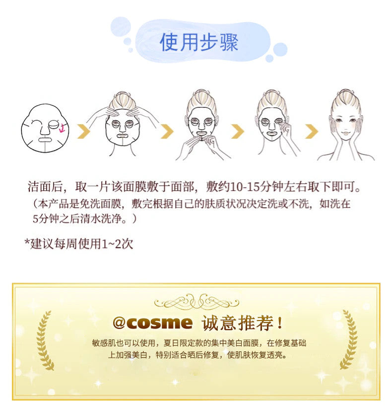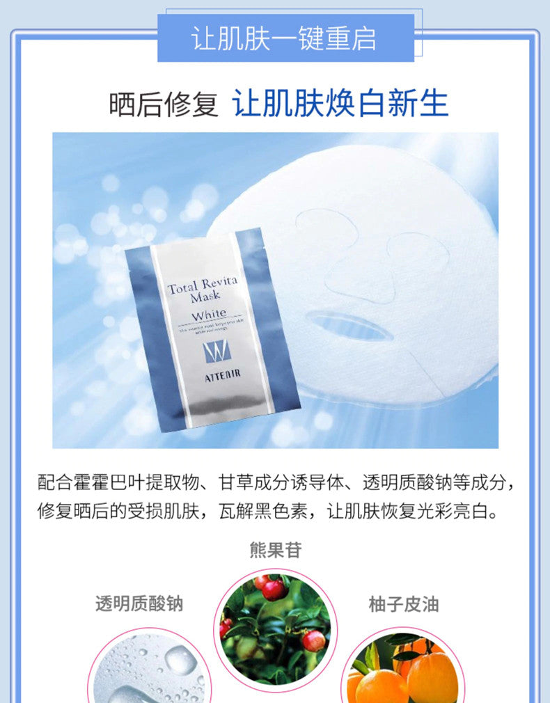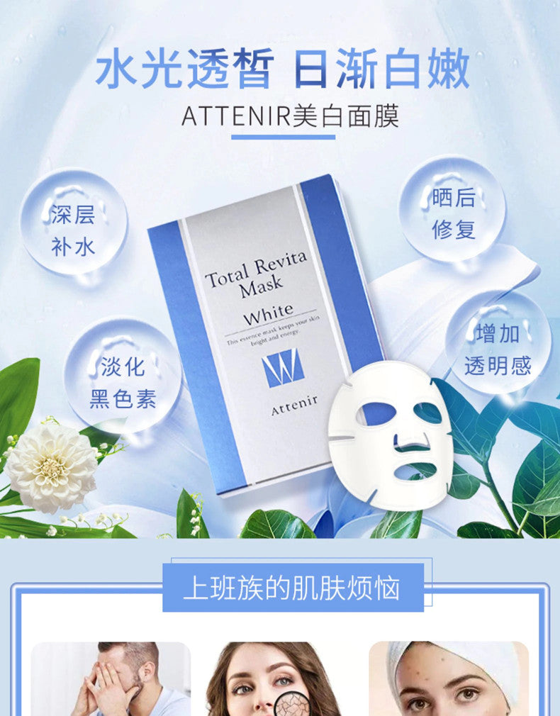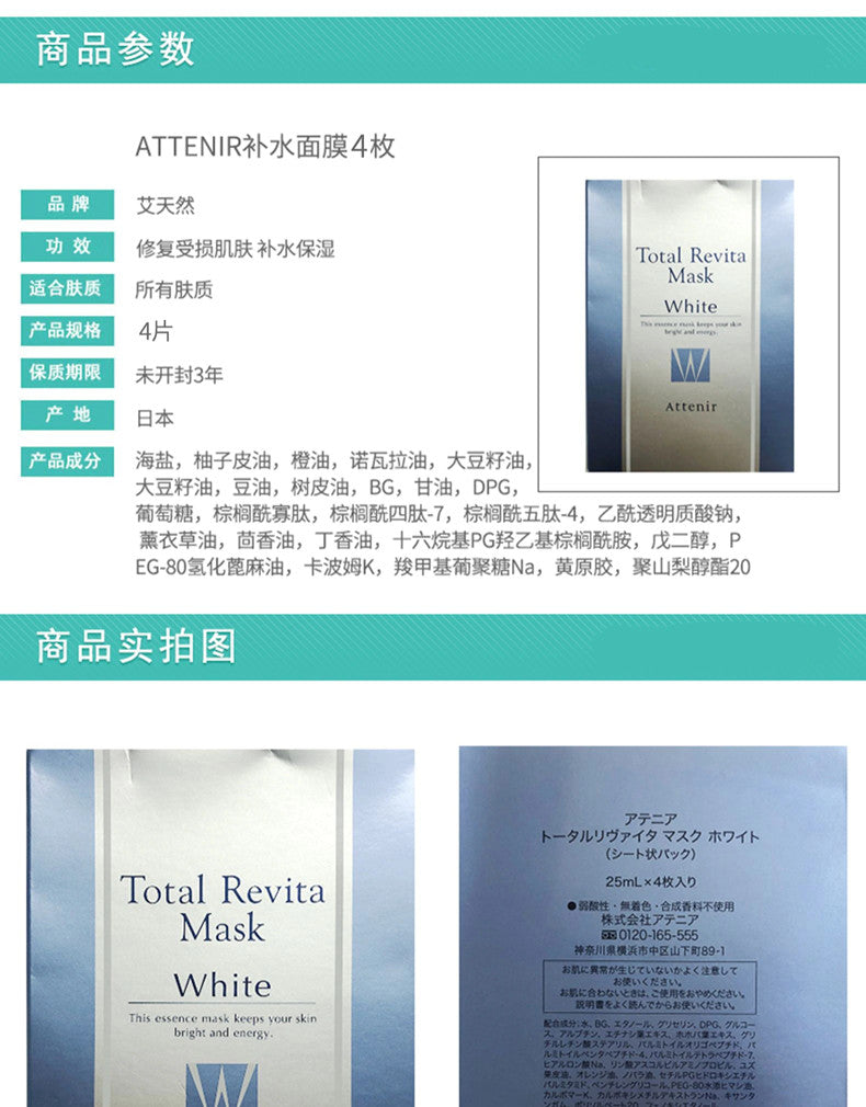 【自营】日本ATTENIR艾天然 亮白补水面膜蓝色款 4枚
