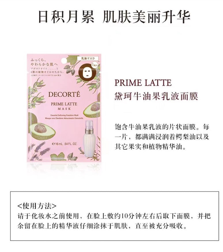 【自营】日本COSME DECORTE黛珂 牛油果面膜 柔嫩纾缓平衡水油提升抵抗力 1枚入