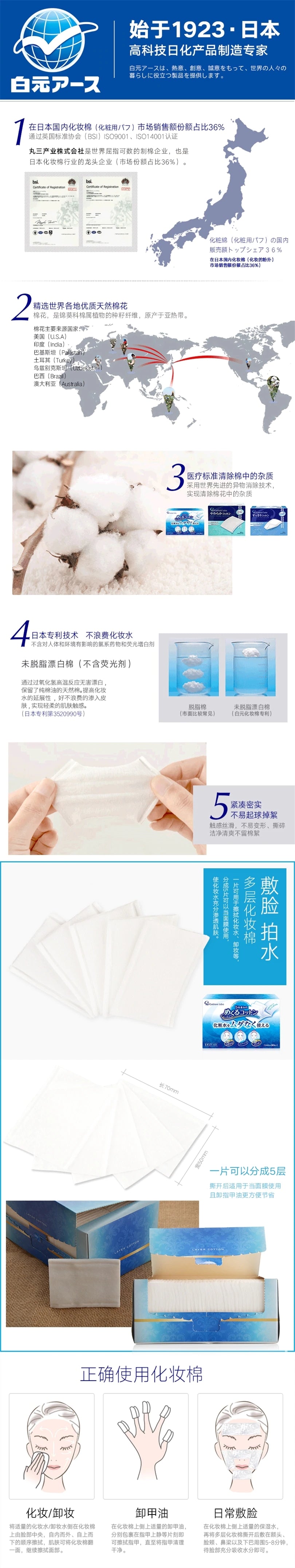 【自营】日本Cotton Labo 白元多层化妆棉 敷脸优质纯天然棉 80g