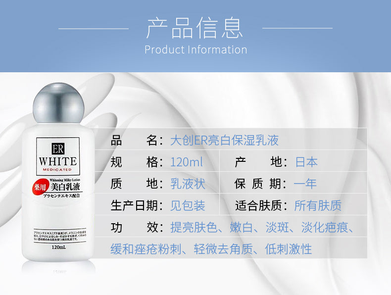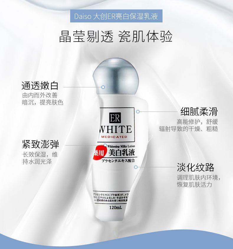 【自营】日本DAISO大创 胎盘素美白乳液 ER 120ml 清爽不油腻 淡斑提亮肤色