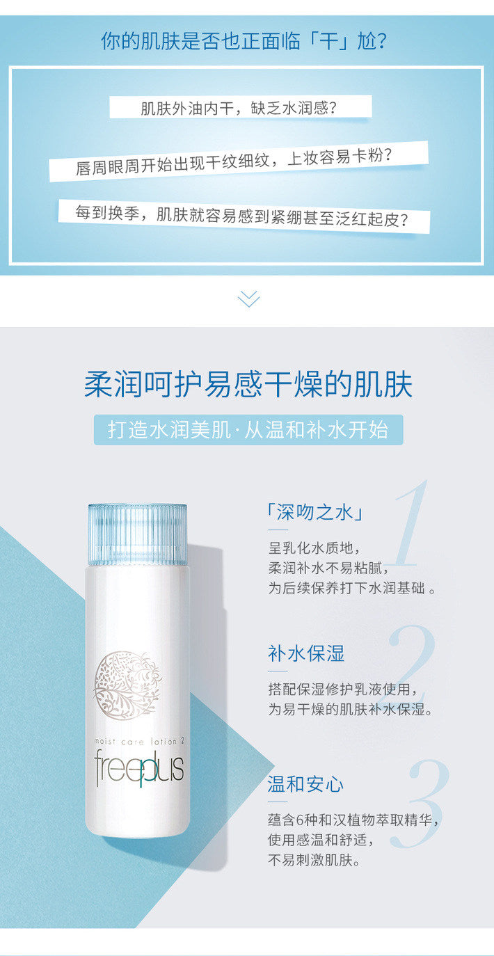 【自营】日本FREEPLUS芙丽芳丝 保湿修护柔润化妆水 130ml 2号 滋润型 敏感肌可用
