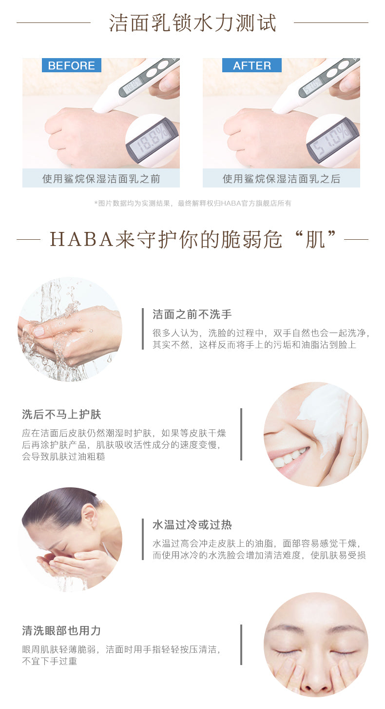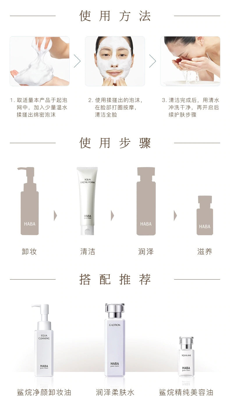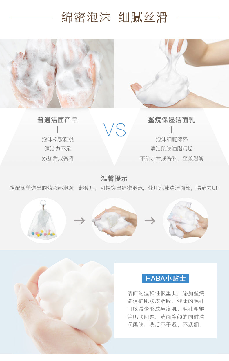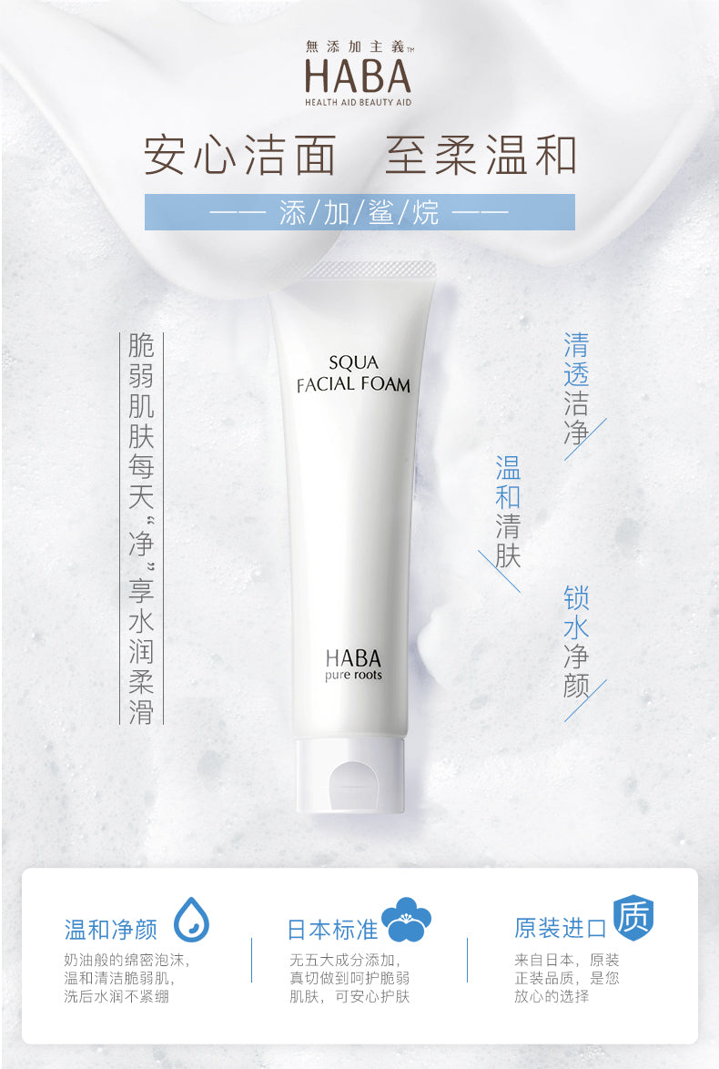 【自营】日本HABA 无添加主义角鲨烷保湿洁面乳洗面奶 100g 温和清洁柔润滋养