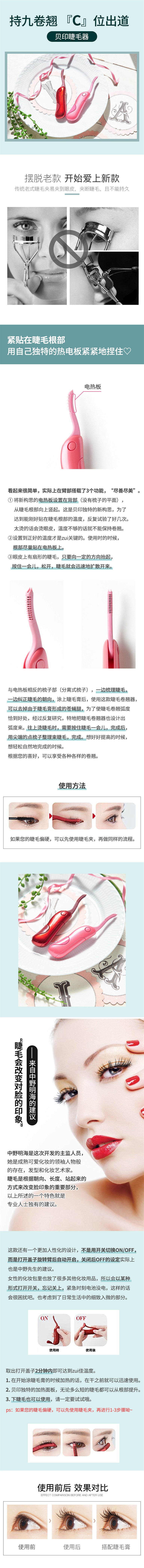 【自营】日本KAI贝印 中野明海 电热烫睫毛器 #粉红色 1件入
