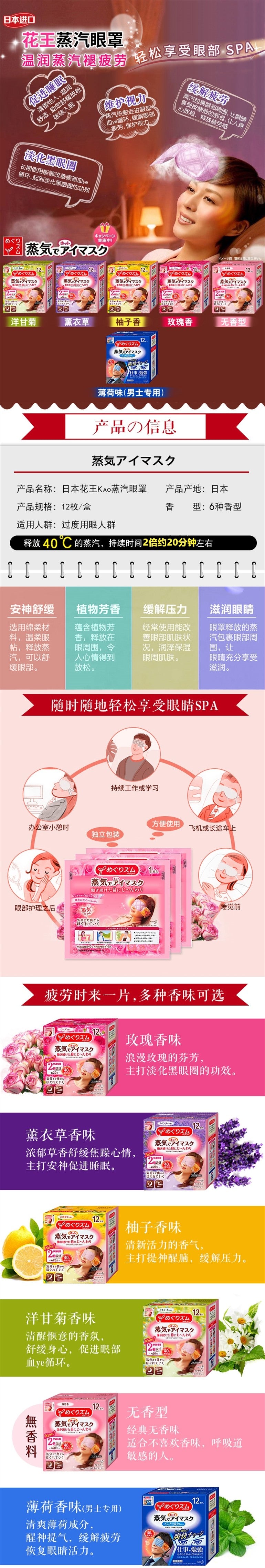 【自营】日本KAO花王 热敷蒸汽保湿眼罩 缓解疲劳去黑眼圈 男士薄荷香型 12枚入