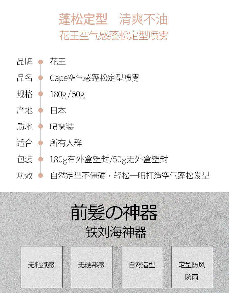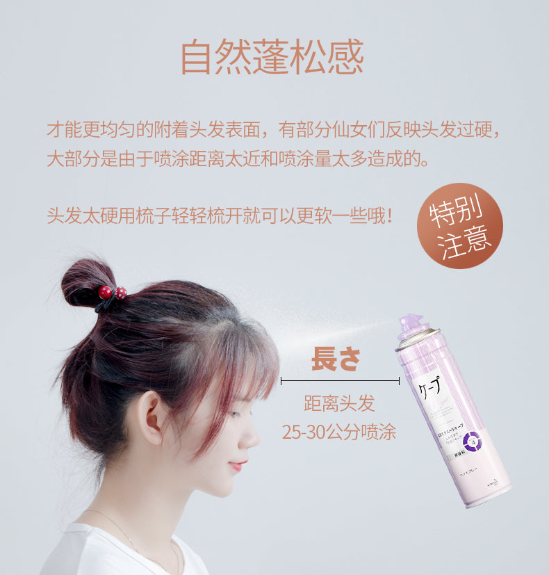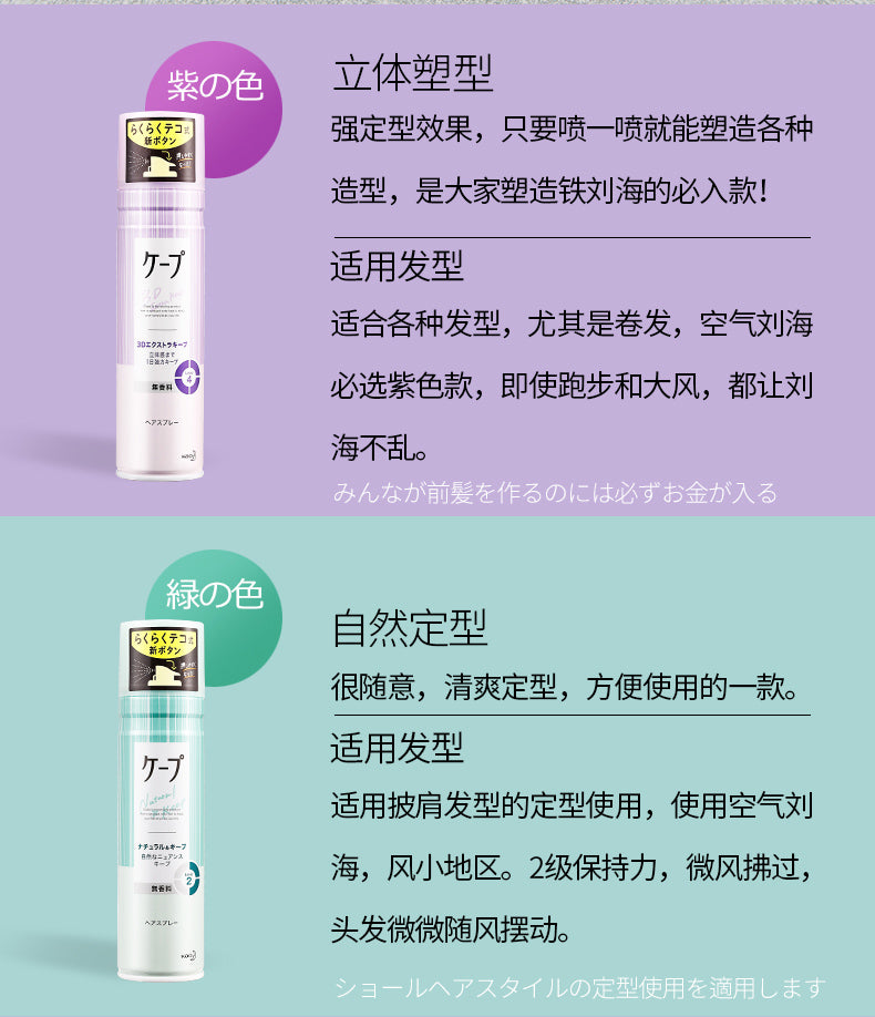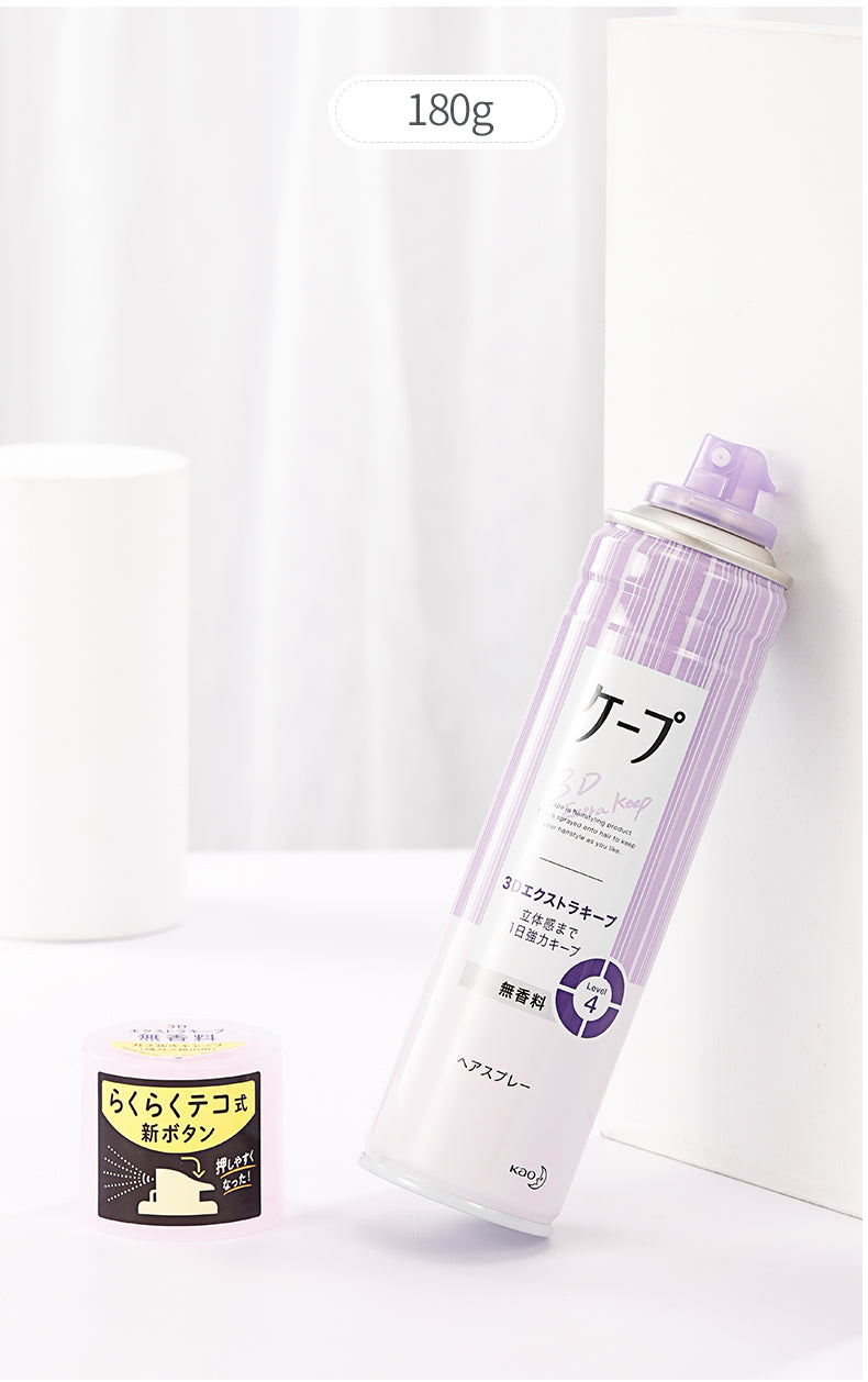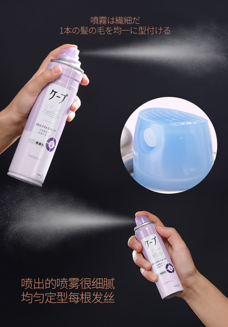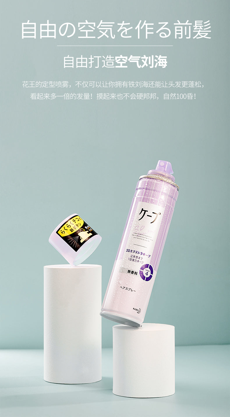 【自营】日本KAO花王 紫罐3D强力定型喷雾 CAPE发胶空气刘海自然蓬松头发造型卷发神器 180g 微香型 新版铁刘海