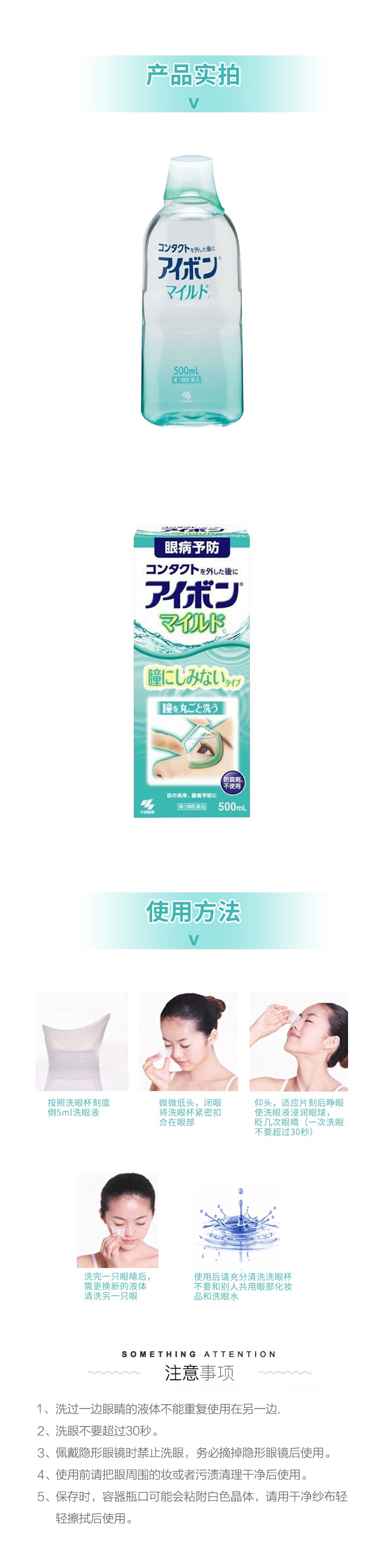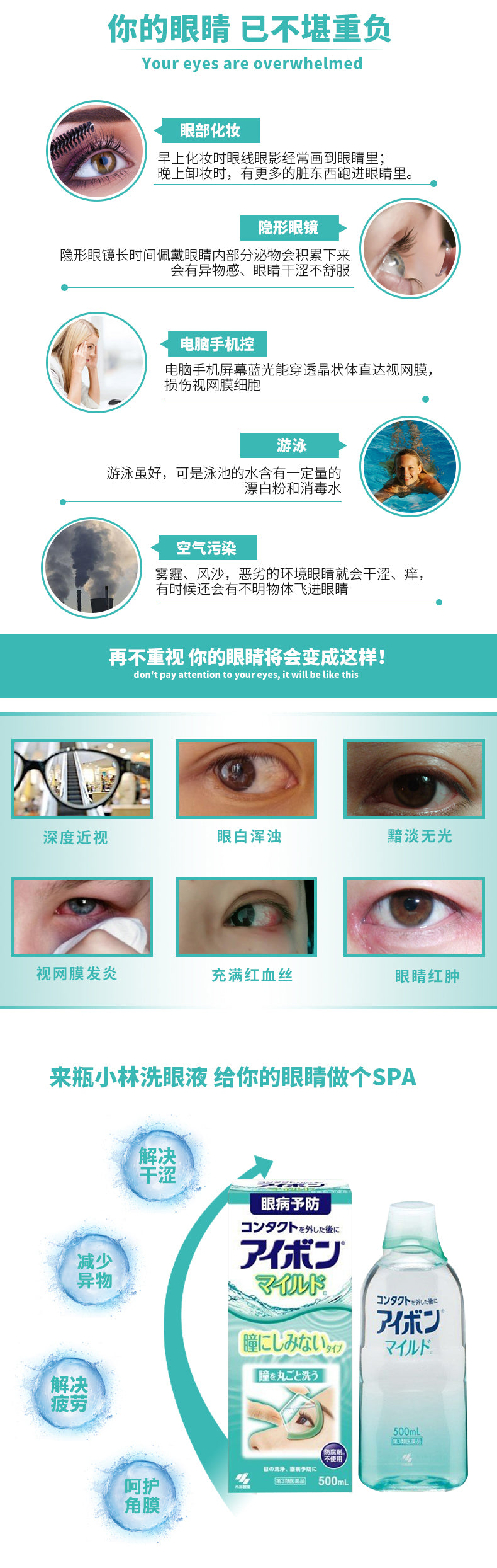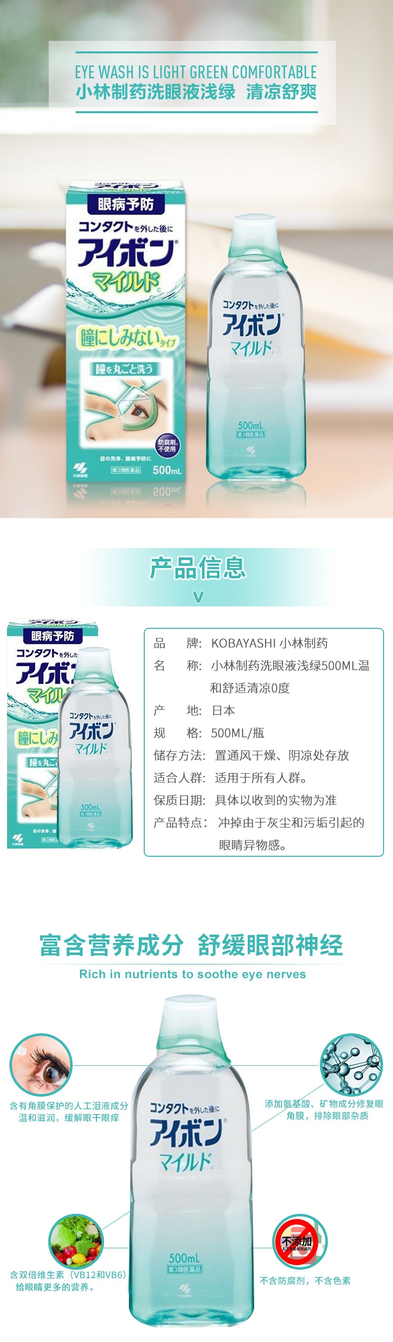 【自营】日本KOBAYASHI小林制药 洗眼液 绿色低刺激缓解疲劳 500ml