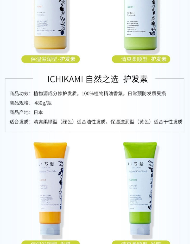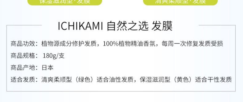 【自营】日本KRACIE嘉娜宝 肌美精 客乐谐ICHIKAMI自然护发发膜 180g 清爽柔顺款