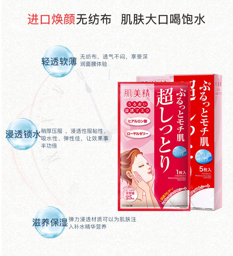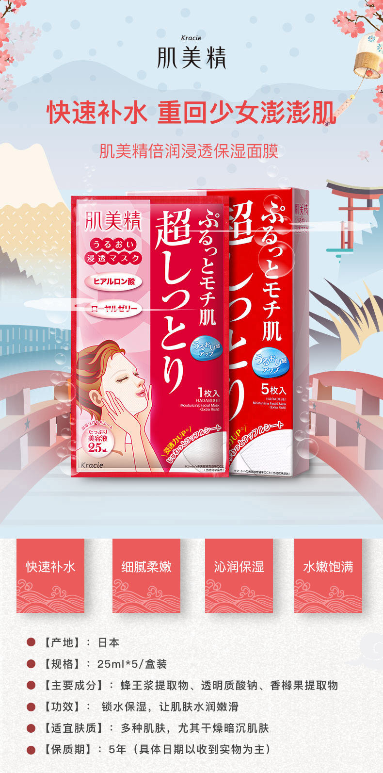 【自营】日本KRACIE嘉娜宝 肌美精 深层保湿补水面膜 5片入