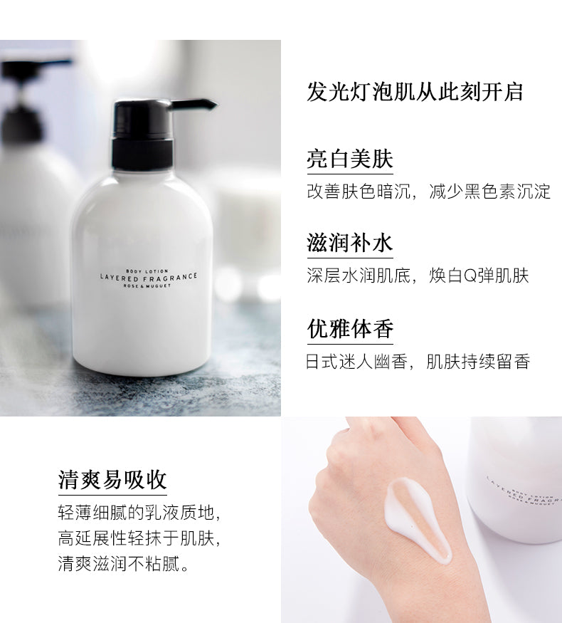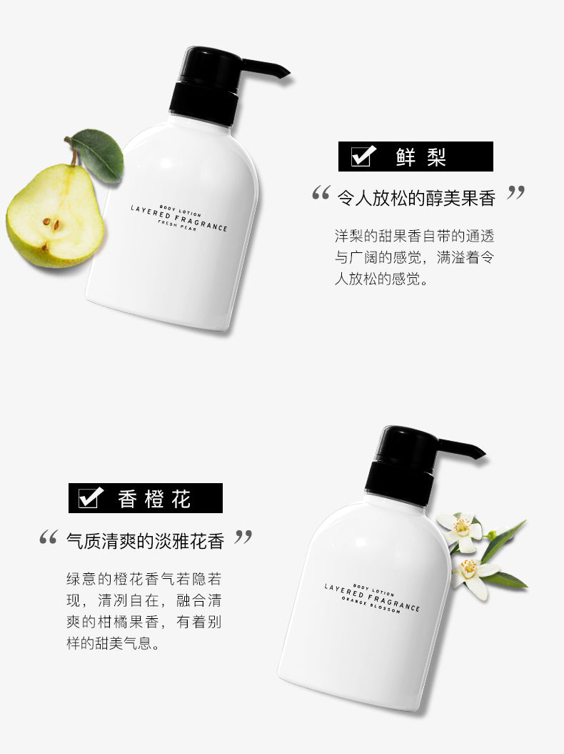 【自营】日本LAYERED FRAGRANCE蕾野 轻奢持久淡香亮白香氛身体乳 400ml 鲜梨香 保湿香体 持久清爽不油腻