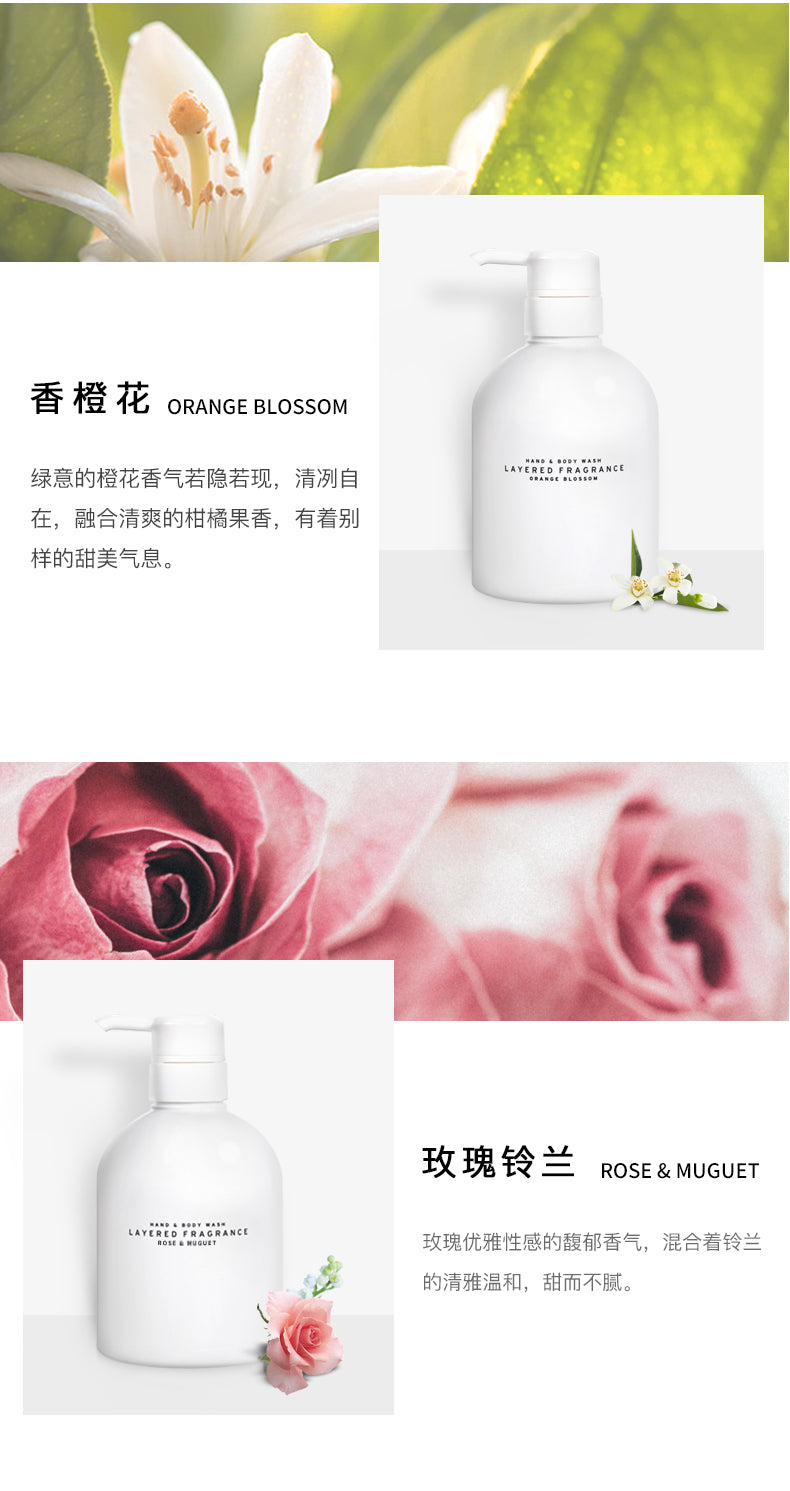 【自营】日本LAYERED FRAGRANCE 轻奢持久淡香香氛沐浴露 香橙花香 500ml 保湿持久留香