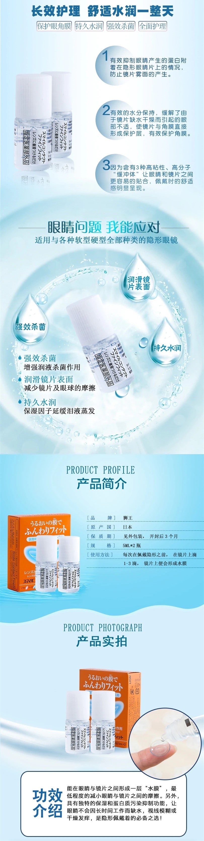 【自营】日本LION狮王 隐形辅助液滴药水润眼液保护角膜缓解干涩润滑戴前用 5ml*2/盒