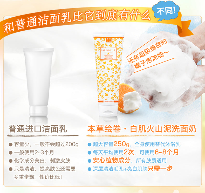 【自营】日本LOVECOSME LC品爱迦沐 本草绘卷白肌火山泥洗面奶 200g 清洁毛孔黑头控油亮白