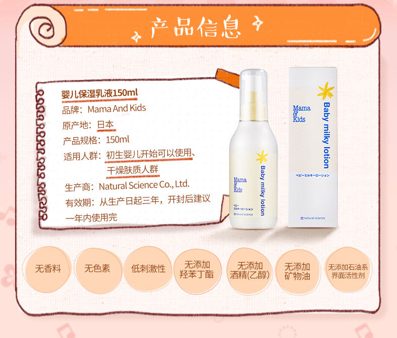 【自营】日本Mama & Kids 婴儿保湿乳液宝宝儿童补水润肤乳液 面部全身适用防干燥 便捷装 150ml