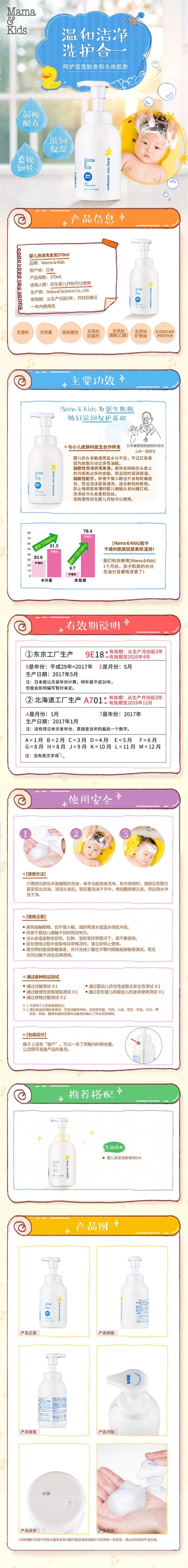 【自营】日本Mama & Kids 婴儿泡沬洗发露 初生宝宝弱酸性洗发水 滋润护发 经济补充装 370ml