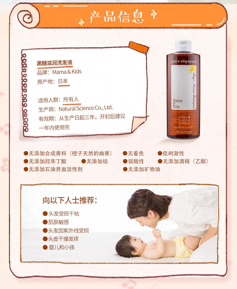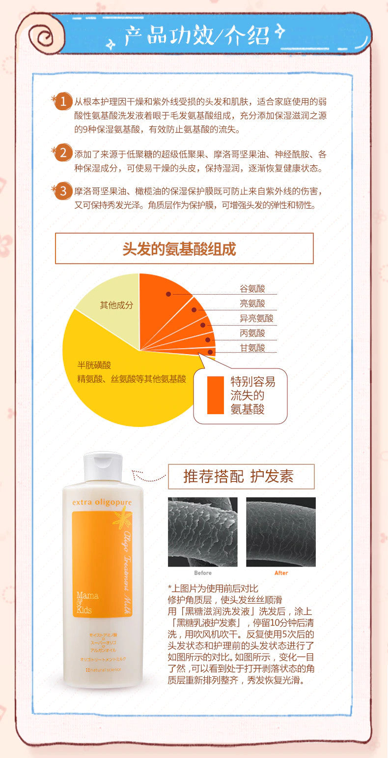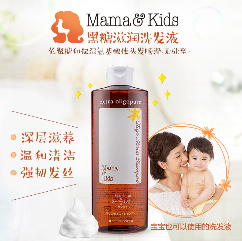 【自营】日本Mama & Kids 黑糖滋润洗发液 防脱发洗发水无硅型 大瓶经济装 720ml