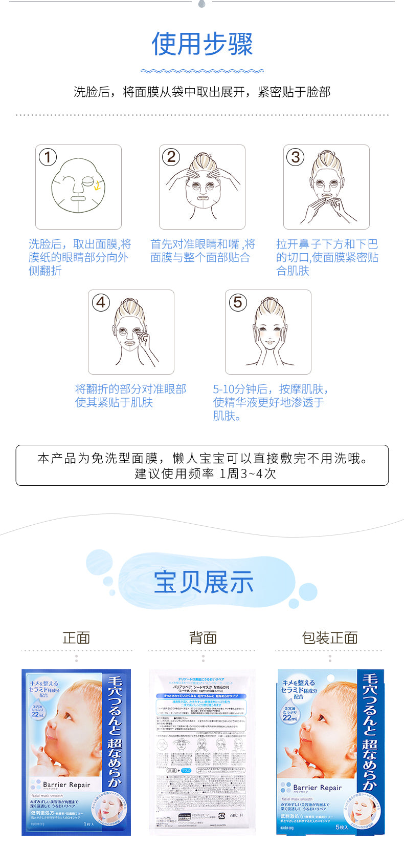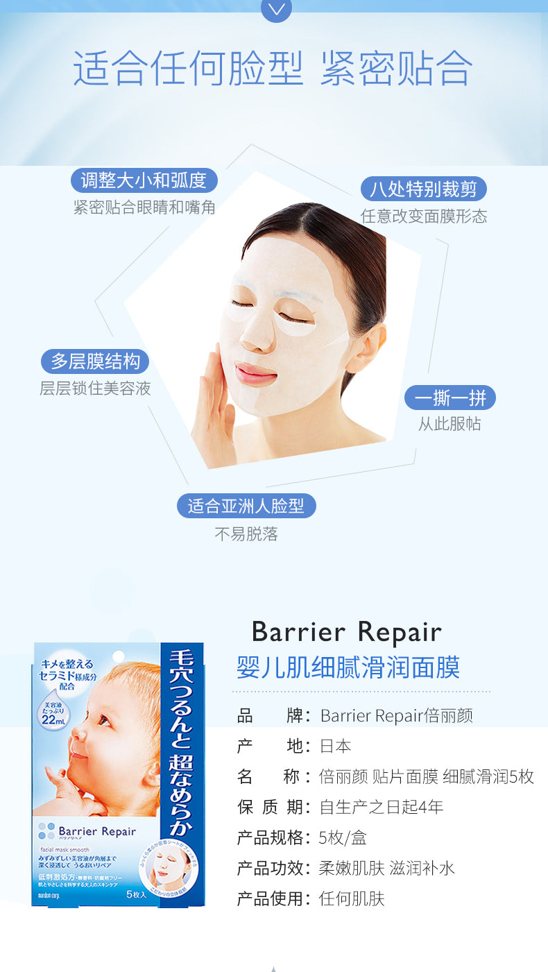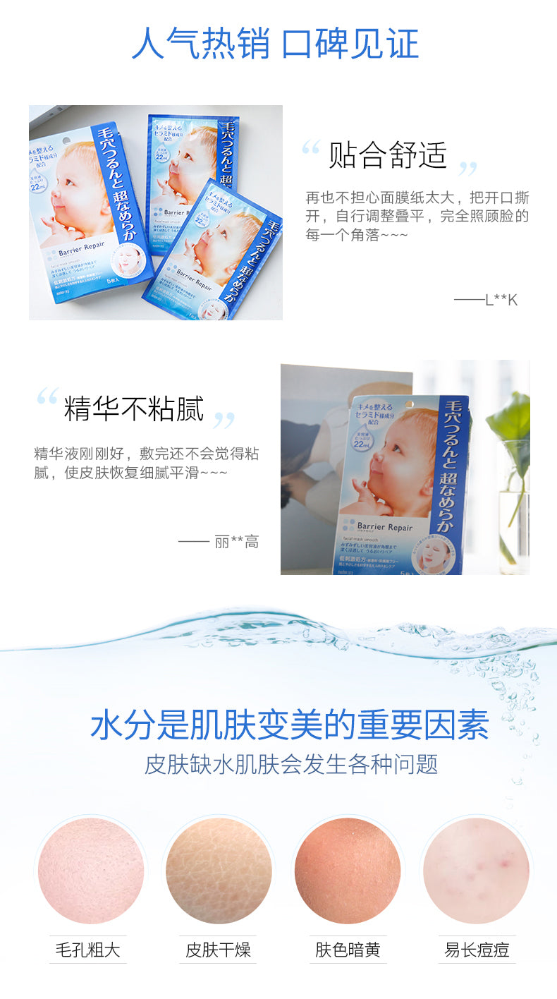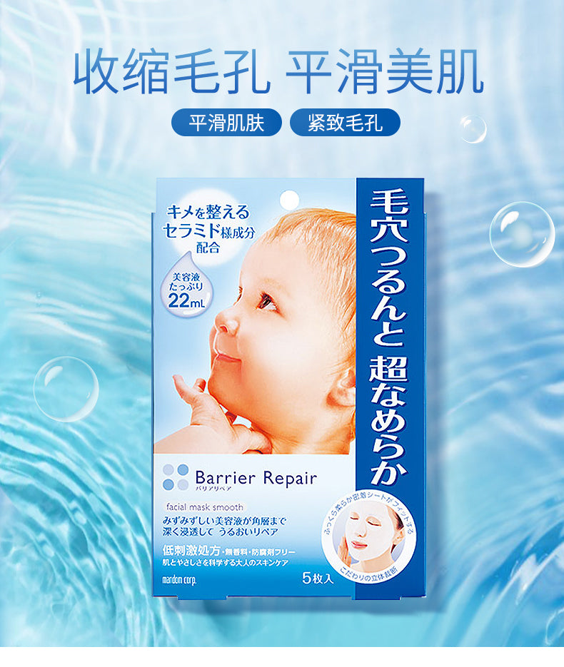 【自营】日本MANDOM曼丹 BARRIER REPAIR 高浸透毛孔细致玻尿酸面膜 5片入