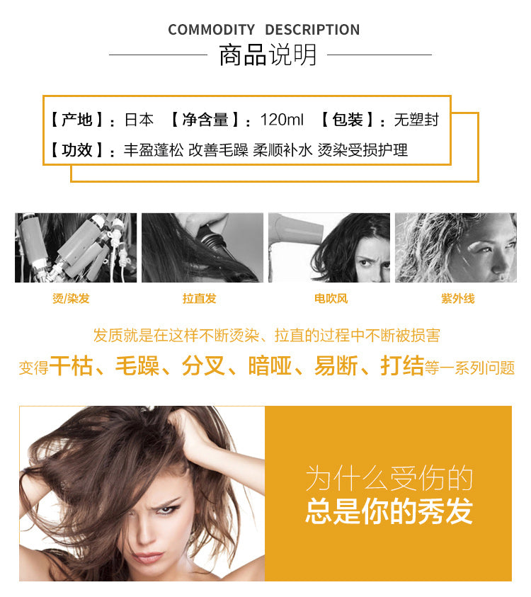 【自营】日本Milbon玫丽盼 免洗护发乳液护发精华乳发油 120ml Emulsion 细软严重受损发质适用 畅销款