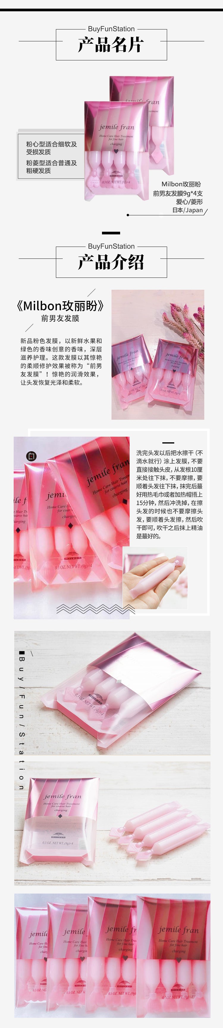 【自营】日本Milbon玫丽盼 Deesse护理发膜 护发发膜损伤修复 前男友粉红色 爱心形9g*4支 细软受损发质