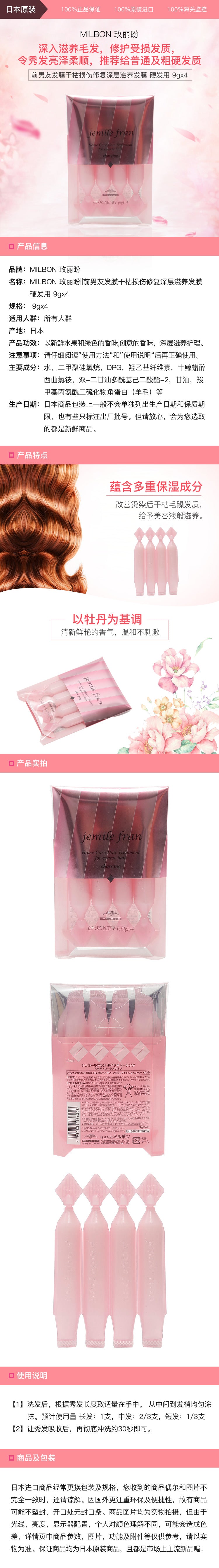 【自营】日本Milbon玫丽盼 Deesse护理发膜 护发发膜损伤修复 前男友粉红色 菱形款 9g*4支 普通或粗硬受损发质
