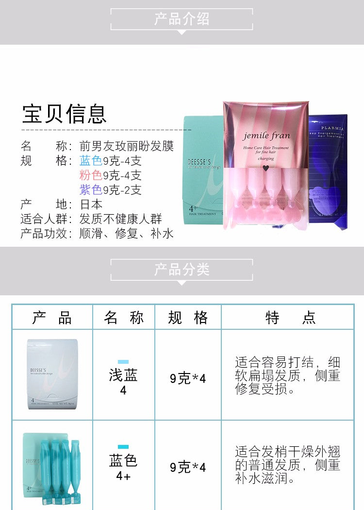 【自营】日本Milbon玫丽盼 Deesse护理发膜 plarmia 6+ 深紫发丝蛋白发膜 9g*2 高度受损发质适用