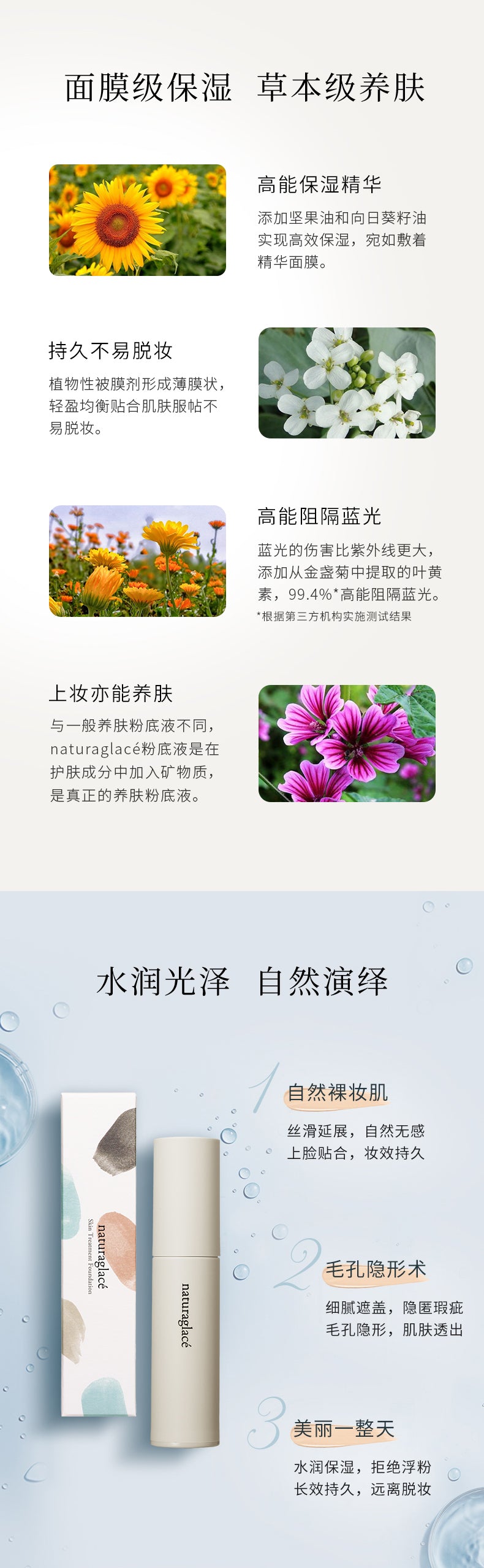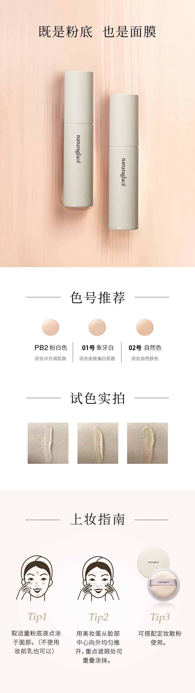【自营】日本Naturaglace花姿菓色 高保湿精华隔离面膜粉底液 20ml PB2 粉白色