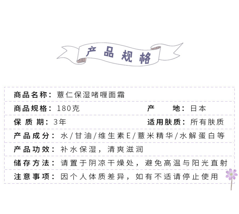 【自营】日本NATURIE 薏仁美白保湿补水啫喱面霜 180g COSME大赏第一位