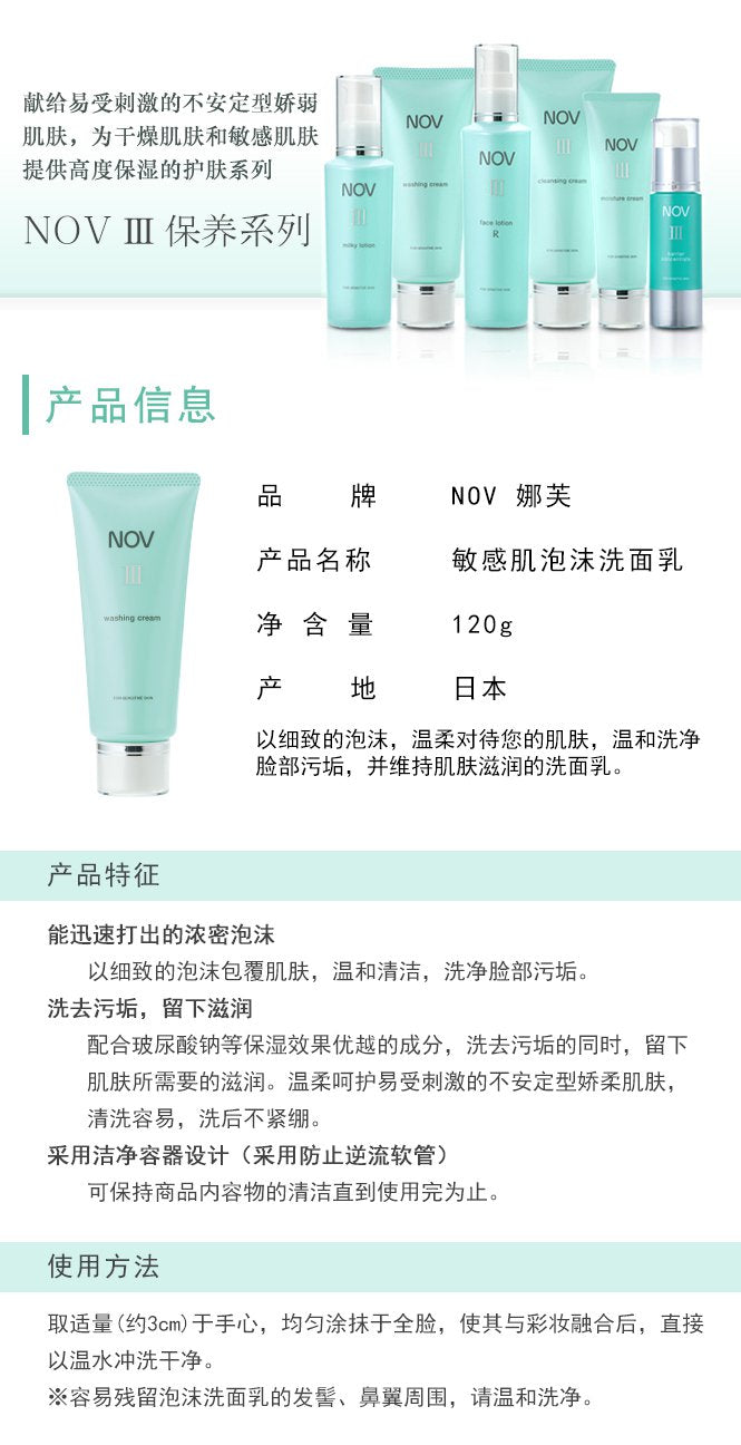 【自营】日本NOV娜芙 敏感肌泡沫洗面乳 Ⅲ系列 120g 保湿低刺激