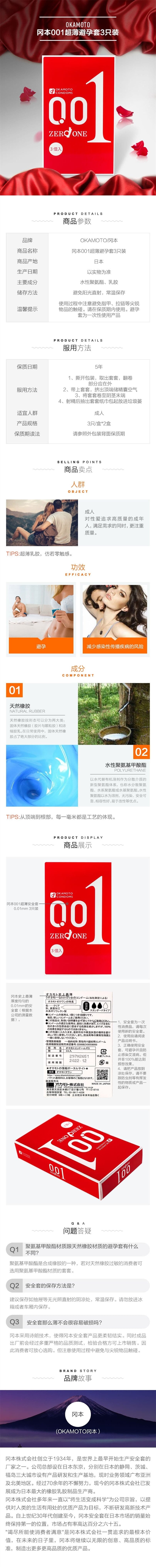 【自营】日本OKAMOTO冈本 001系列 0.01mm超薄安全避孕套 3个入