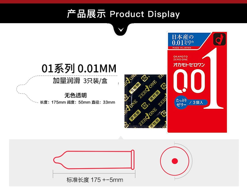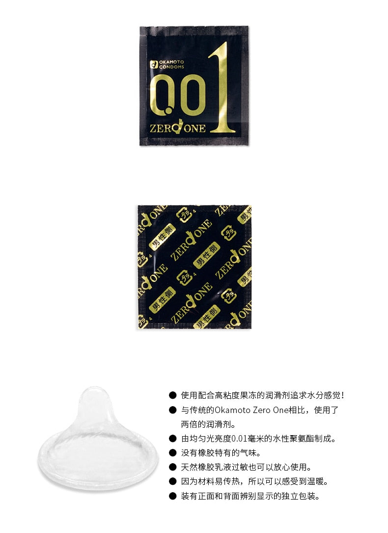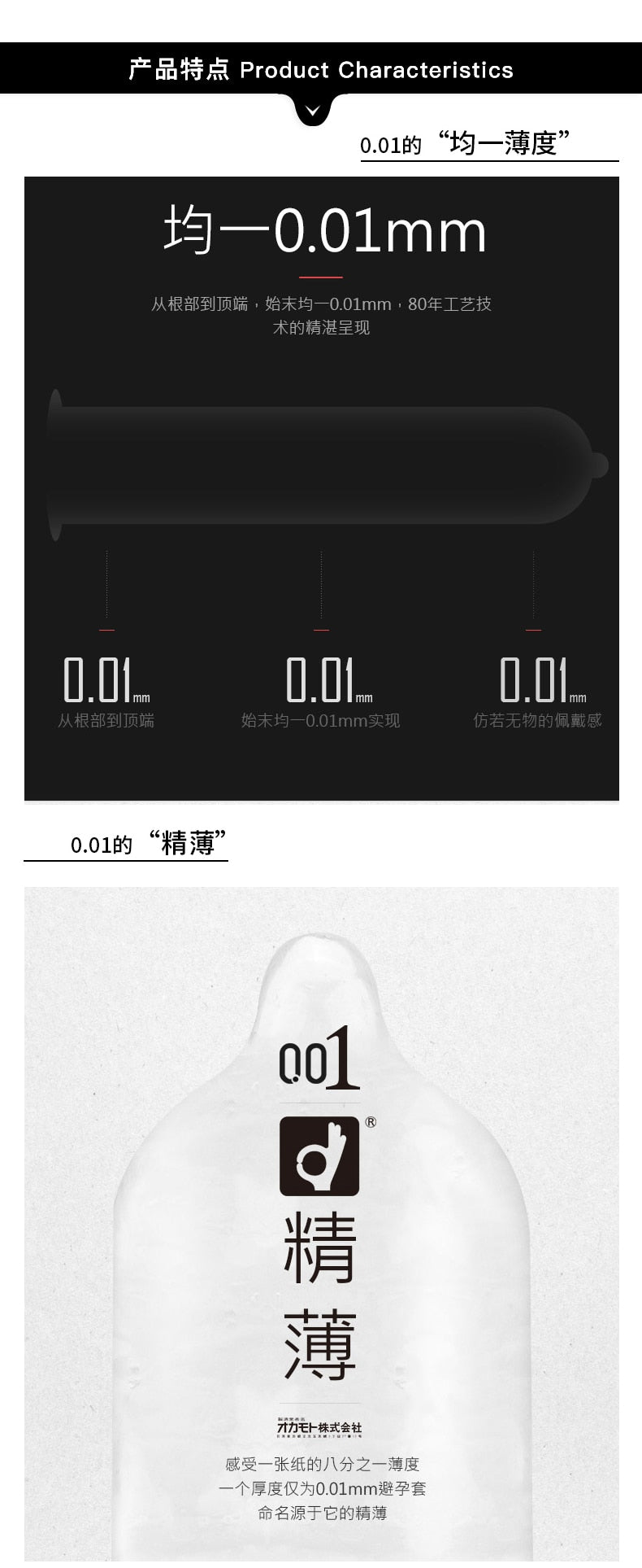 【自营】日本OKAMOTO冈本 001系列 0.01mm超薄安全避孕套 3个入 200%润滑亲肤