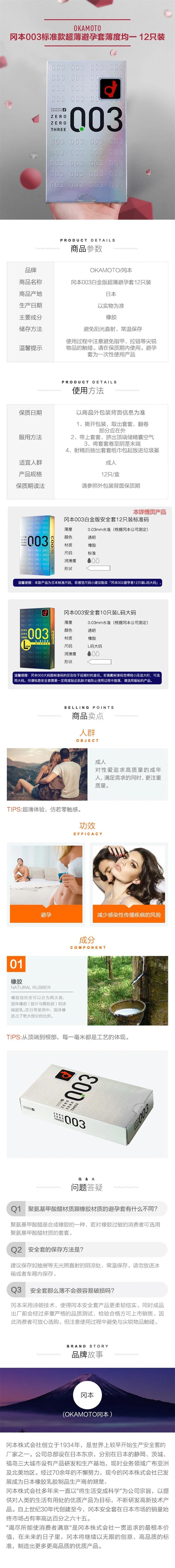 【自营】日本OKAMOTO冈本 003白金超薄版安全套 12枚装