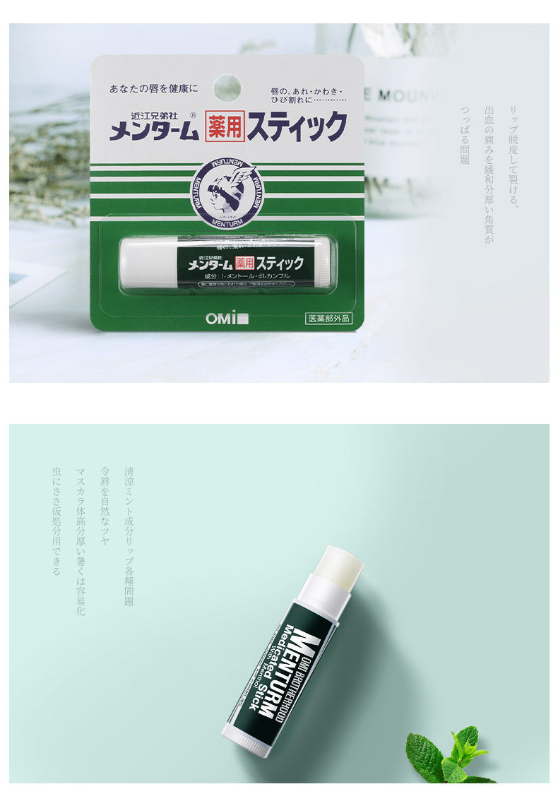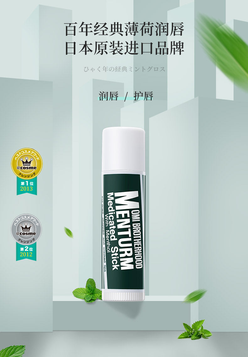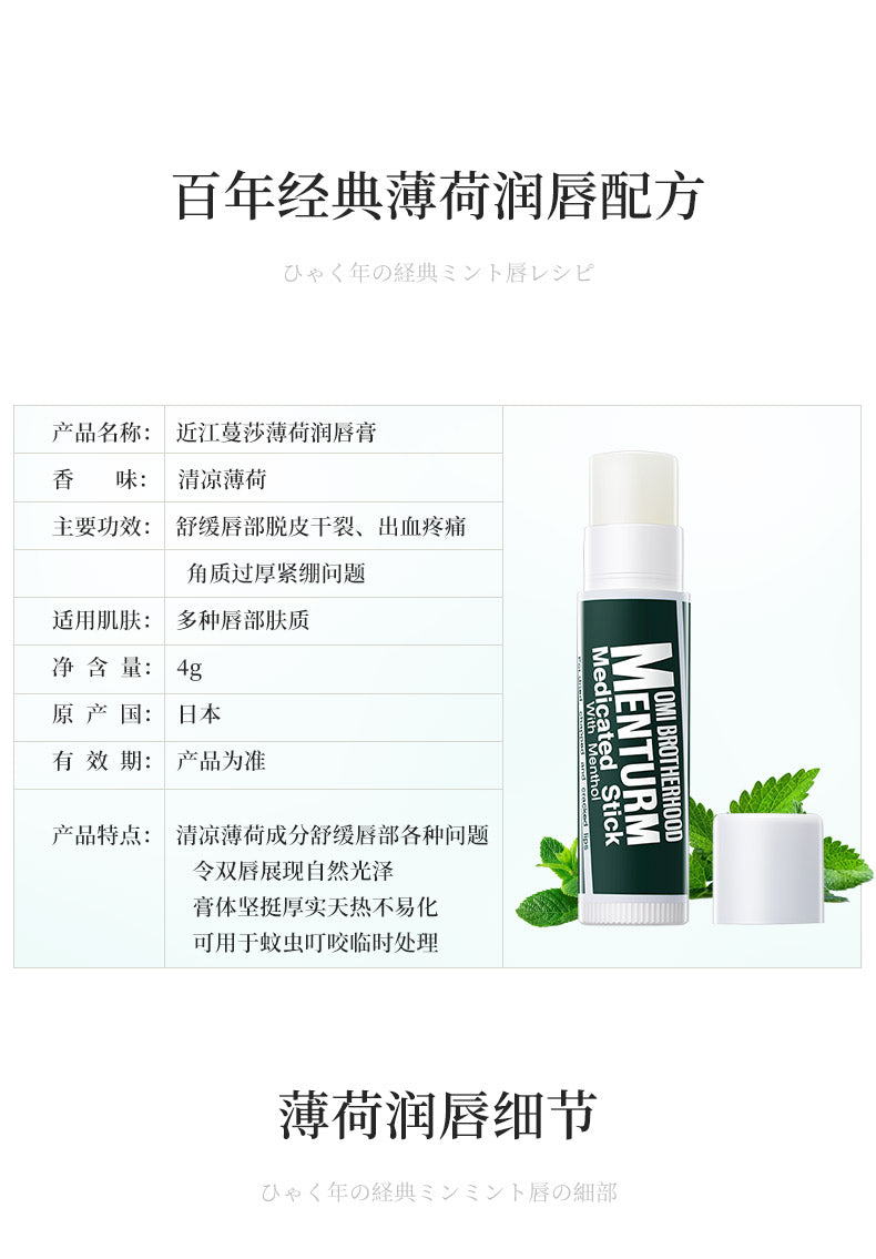 【自营】日本OMI近江兄弟 天然植物薄荷润唇膏 4g 无色水润持久保湿修护唇纹