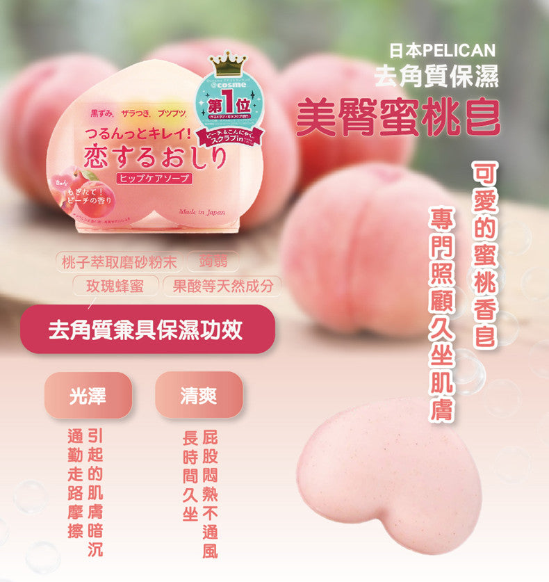 【自营】日本PELICAN 蜜桃香氛美臀皂 水蜜桃屁屁香皂 桃子皂 80g 去黑去角质 淡化色素嫩肤